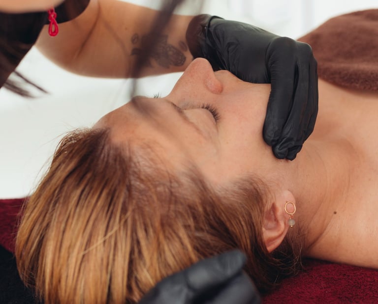 La sesión termina con un masaje intraoral que relaja la mandíbula y mejora la circulación. Incluye taping facial.